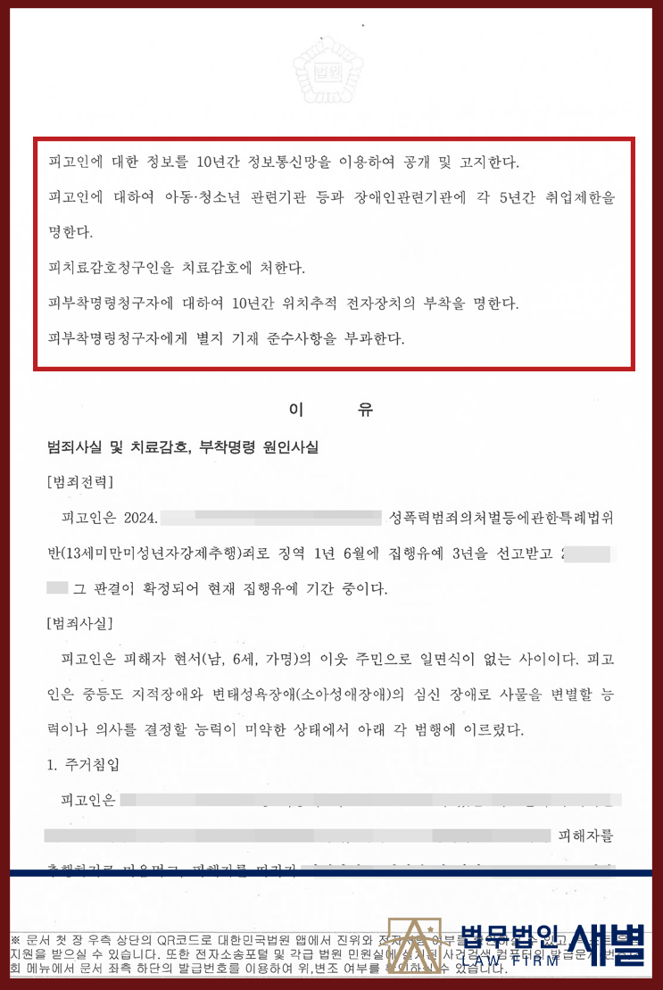 법원 역시 B의 죄질이 나쁘다고 보았으며 A의 정신적 충격 등을 고려하여 B를 징역 2년 6개월, 10년간 정보공개, 10년간 위치추적 전자장치 부착을 명함